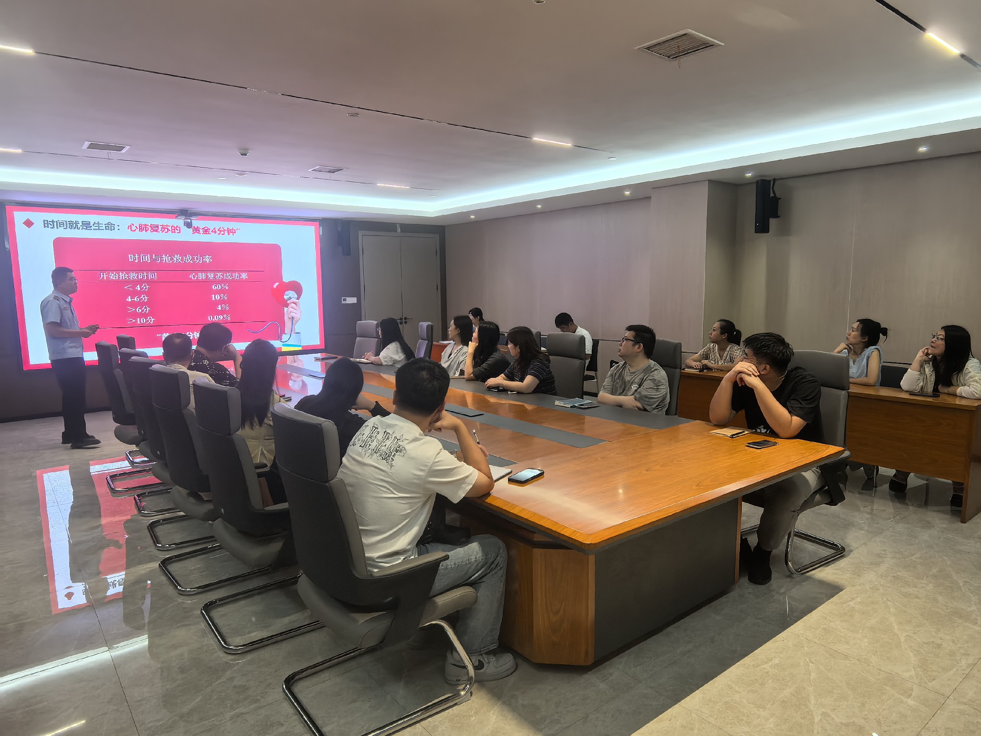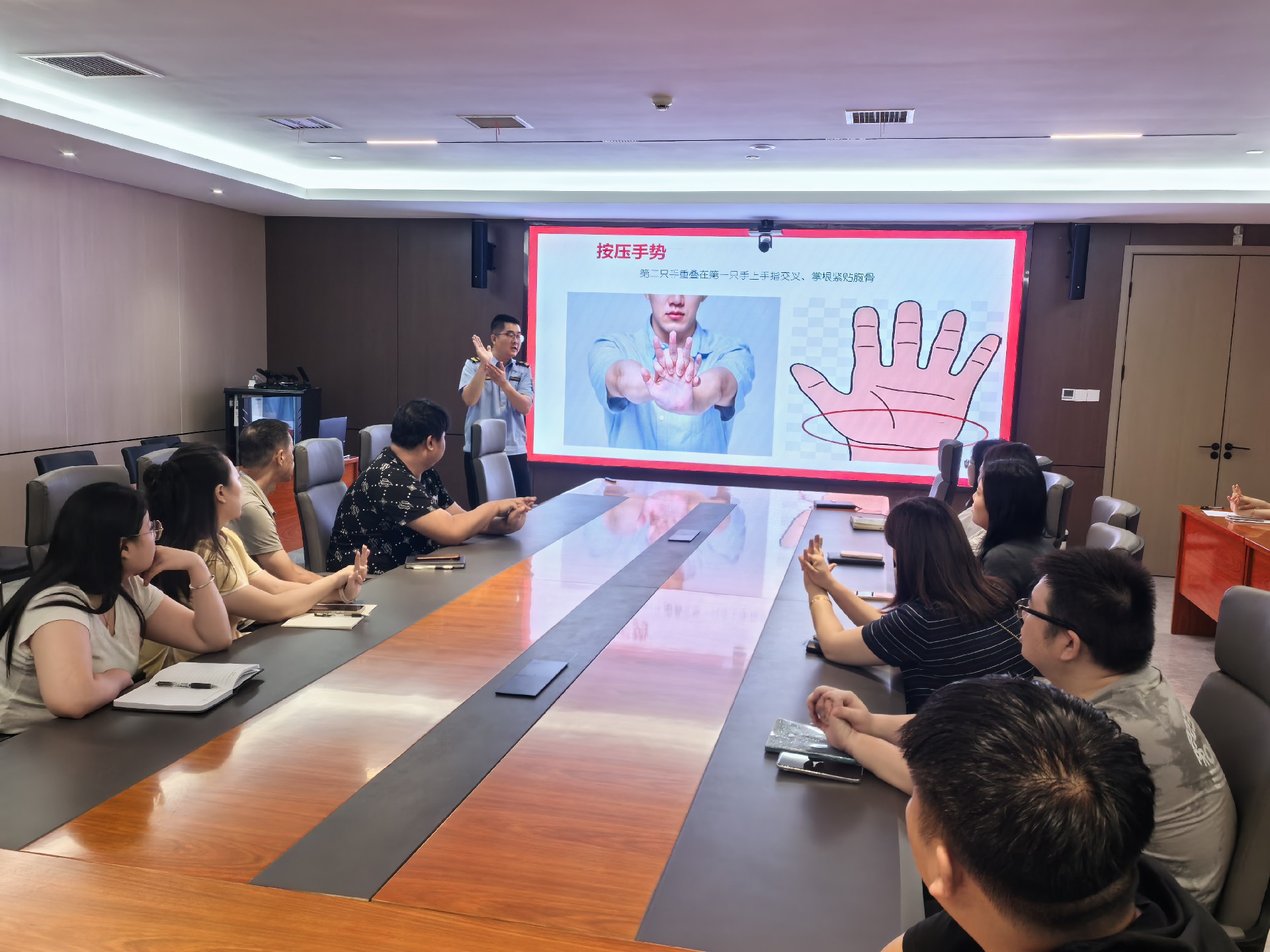 培訓(xùn)內(nèi)容緊密圍繞職工健康實(shí)際需求展開。袁教官首先聚焦突發(fā)意外急救技能,以心肺復(fù)蘇(CPR)為核心,系統(tǒng)講解操作規(guī)范、核心要點(diǎn)及實(shí)踐意義,幫助職工熟練掌握這一“救命技能”;隨后結(jié)合健康生活方式,從飲食營養(yǎng)、科學(xué)運(yùn)動、戒煙限酒及心理調(diào)適等方面提供專業(yè)指導(dǎo),并針對職場人群特點(diǎn),深入分析職業(yè)病預(yù)防與改善方法,細(xì)致解讀重大疾病早期預(yù)警信號?,F(xiàn)場互動環(huán)節(jié)中,教官與職工積極交流,耐心解答關(guān)于急救實(shí)操、日常健康養(yǎng)護(hù)等問題,確保培訓(xùn)內(nèi)容精準(zhǔn)對接職工需求。